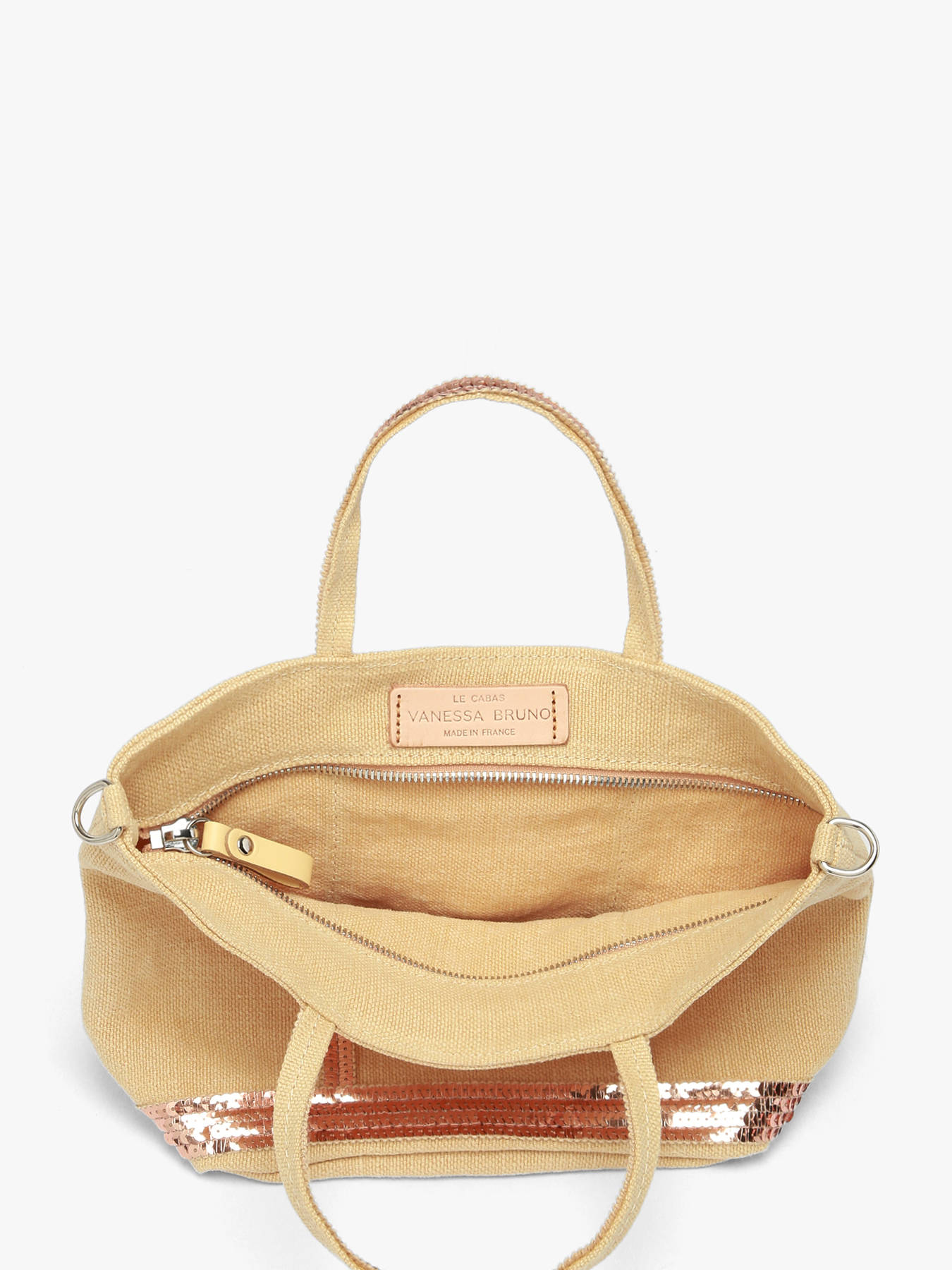 Notre équipe vous conseille ce sac bandoulière Vanessa Bruno de la ligne “Cabas lin” pour ses atouts : la taille XS de ce cabas composé de lin et de paillettes, ses trois possibilités de portage : à la main, à l’épaule et en bandoulière qui est réglable et amovible et son étiquette intérieure en cuir qui certifie que « Le Cabas Vanessa Bruno [est] Made in France ». Qu’attendez-vous pour ajouter cette pièce à votre panier ?