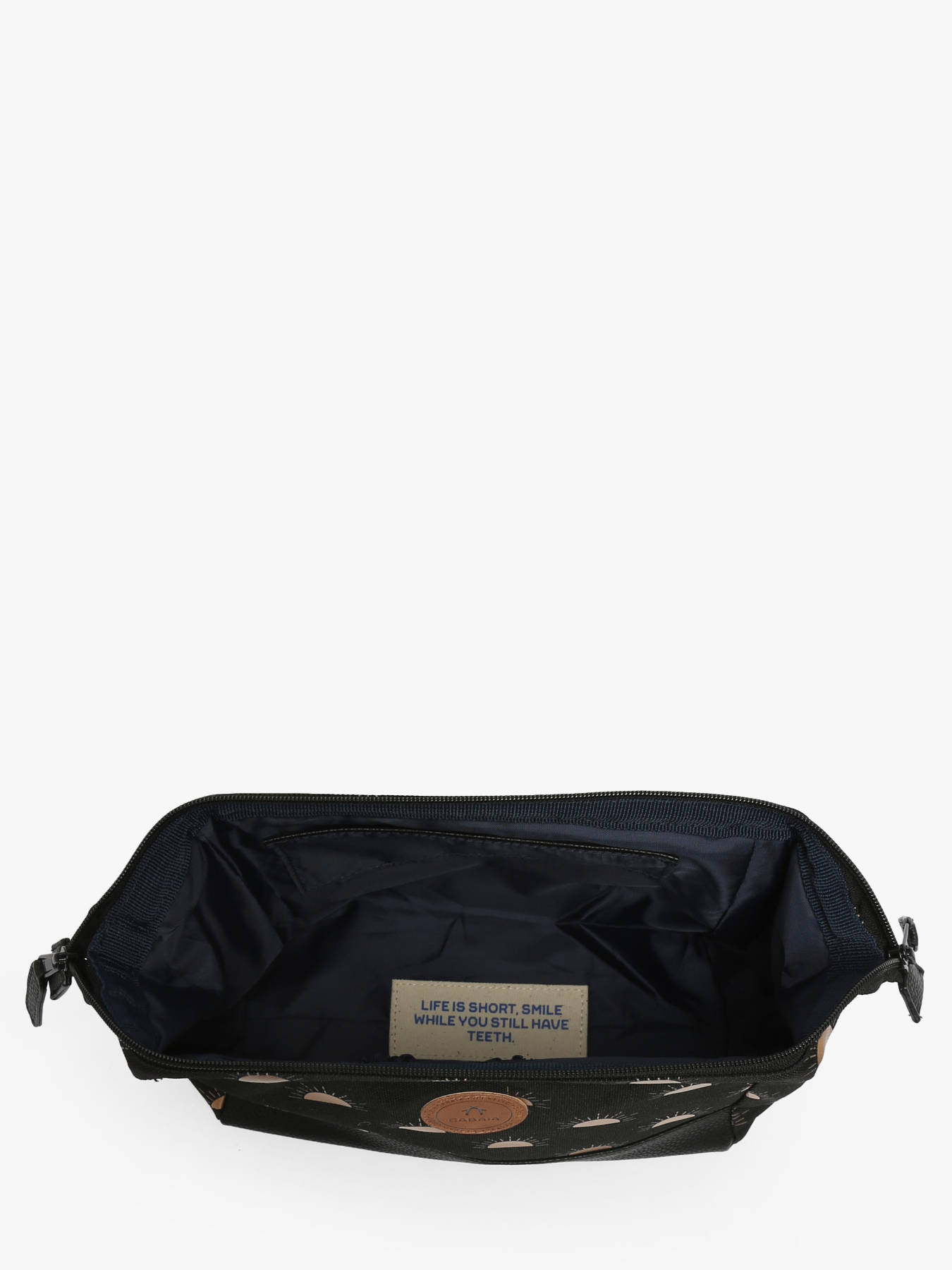 Edisac vous recommande cette trousse de toilette Cabaia pour : son agréable et sa résistante matière en polyester recyclé (naturellement résistante à l’eau), ses lignes élégantes et modernes, ses beaux motifs, ses jolies couleurs et surtout son compartiment intérieur dans lequel vous pourrez glisser vos affaires (savon, gant de toilette, déodorant, crème, parfum…). N’attendez pas pour vous faire plaisir !
